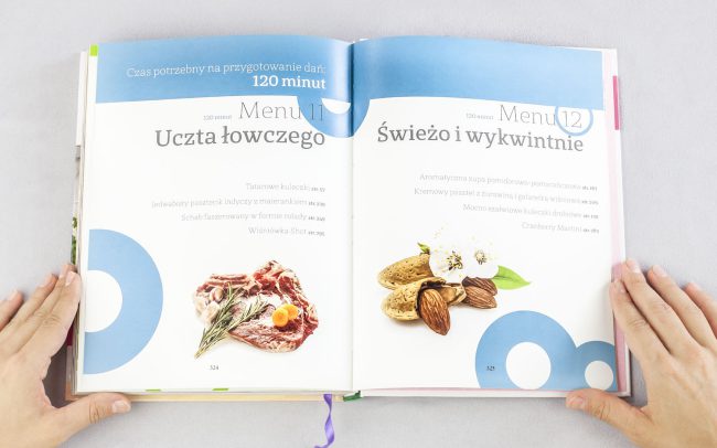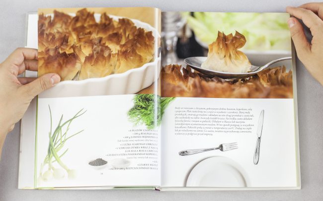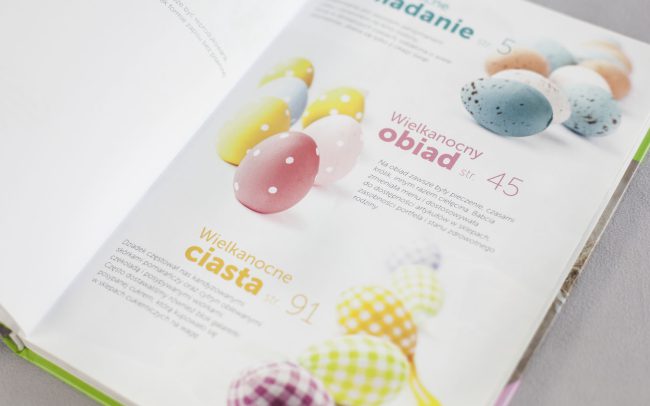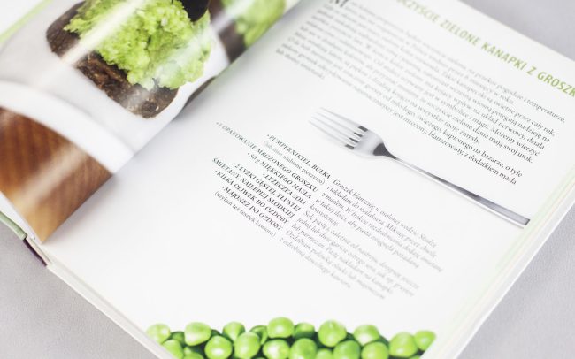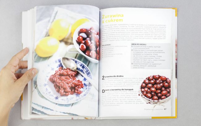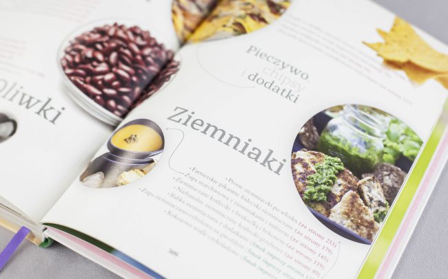 Oprócz fotografii potraw, które znajdują się zawsze po lewej stronie rozkładówki, znajdziemy zdjęcia samych produktów sfotografowanych na białym tle (tzw. paskshot). Kompozycja tych fotografii i składu tekstu dodaje książce dynamiki i zaciekawia czytelnika. Każda rozkładówka wygląda nieco inaczej, dlatego z przyjemnością przegląda się całą książkę w poszukiwaniu inspiracji. Takie rozwiązanie, choć czasochłonne i wymagające dużego nakładu pracy i wiedzy graficznej, skutkuje atrakcyjnym efektem i zachętą do częstego użytkowania książki.