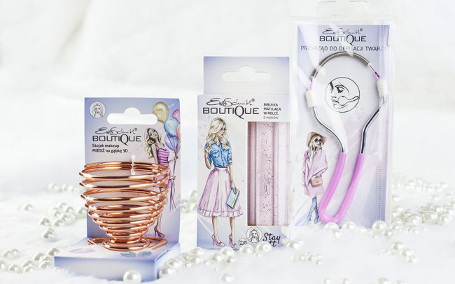 Ideą całej serii produktów z akcesoriami do pielęgnacji miał być dziewczęcy, lekki look, który wyróżnia się na tle innych opakowań na półkach. To nie miały być kolejne neutralne opakowania, które są jedynie tłem. Tutaj stawiamy na historie, emocje, wrażenie. W tym wypadku było to szczególnie ważne, ponieważ zastosowanie samych produktów nie jest oczywiste (przyrząd do depilacji twarzy, bibułka matująca). Opakowanie musiało więc tak mocno przyciągać uwagę, by docelowy klient chwycił je do ręki i doczytał przeznaczenie produktu. Po dodaniu ilustracji przedstawiających szkice wyjęte wprost ze świata mody, mamy do czynienia z produktem dla każdej miłośniczki mody i dobrego stylu. Ta seria produktów wymagała szczególnego zwrócenia uwagi na wykrojnik opakowania. Ważnym było, by pokazać produkt nie zapominajac jednak o pozostawieniu miejsca na informacje dotyczacą jego przeznaczenia.